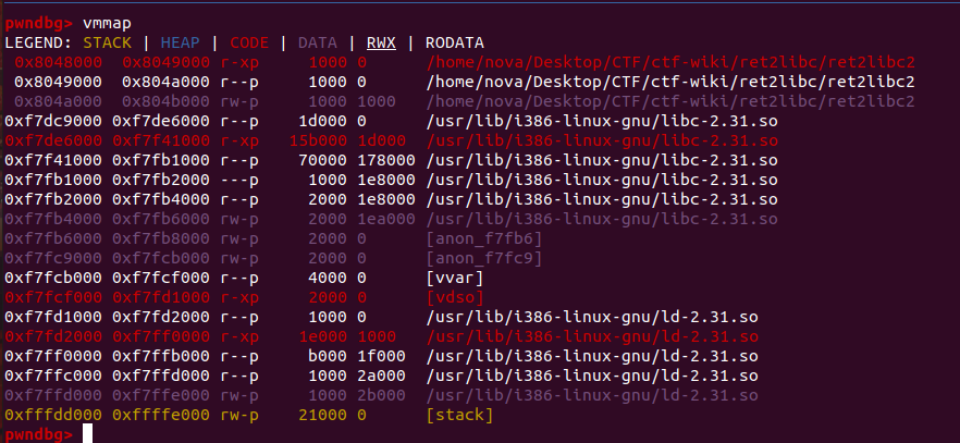 0x804a000 0x804b000 rw-p 1000 1000 /home/nova/Desktop/CTF/ctf-wiki/ret2libc/ret2libc2