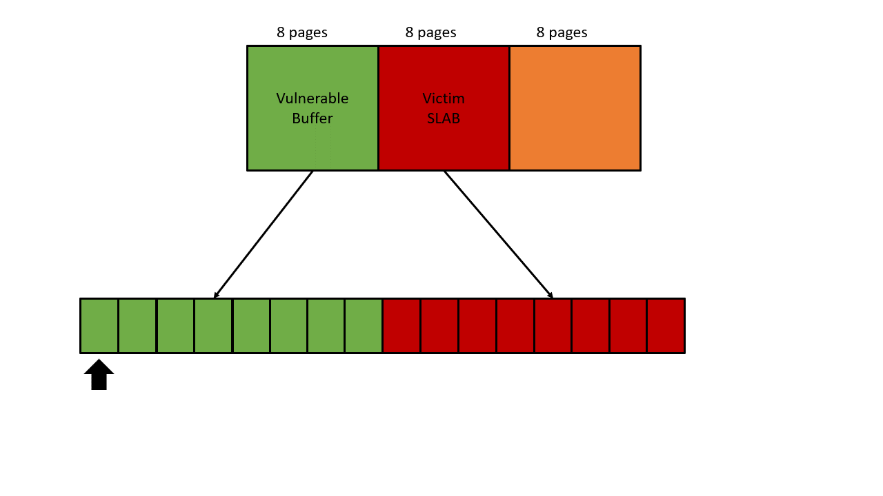 在 PAGE 这里,我们可以确保 free 的 page 都是 Contiguous Pages —— 即所有我们用来分配 vuln 和 victim 的 slub page 都是从 high-order 拆出来的。